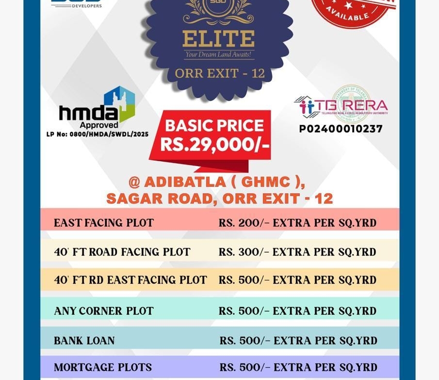 Hmda Approved Plots For Sale In Adibatla,