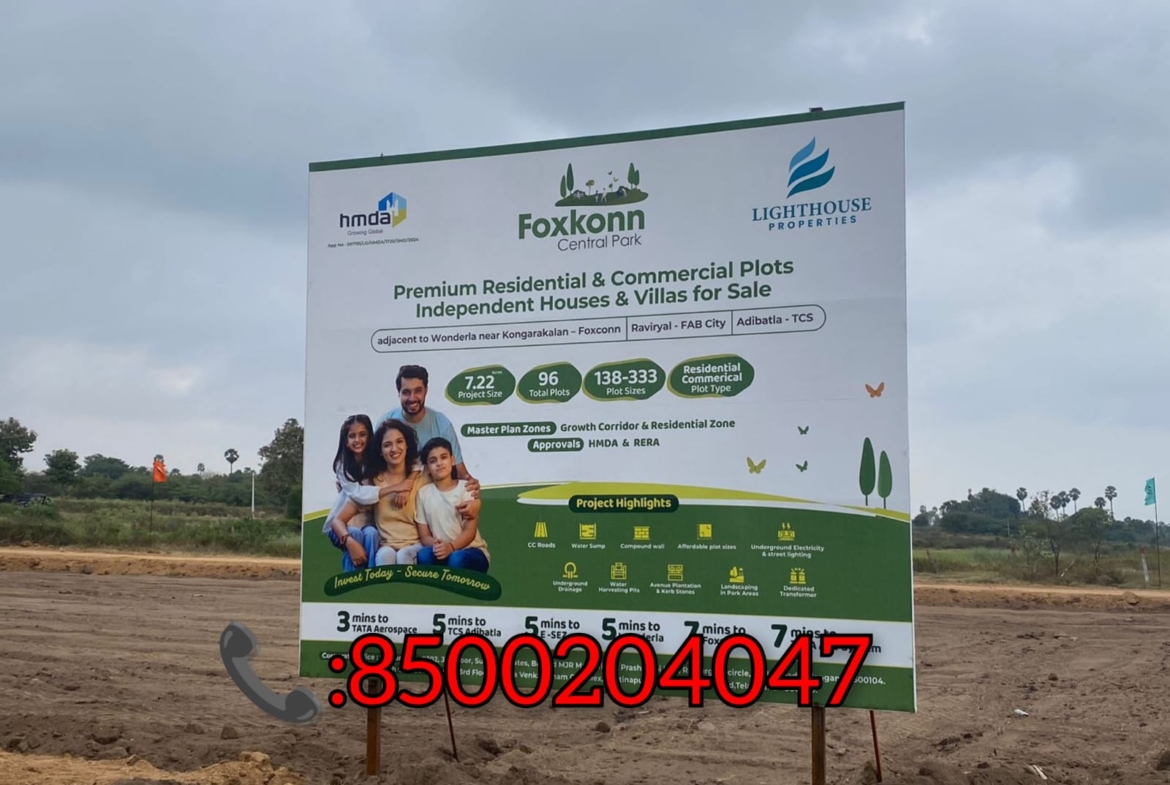 Premium Open Plots for Sale -Kongarakalan – Adibatla (Behind Wonderla), Inside ORR, Hyderabad – 8500204047