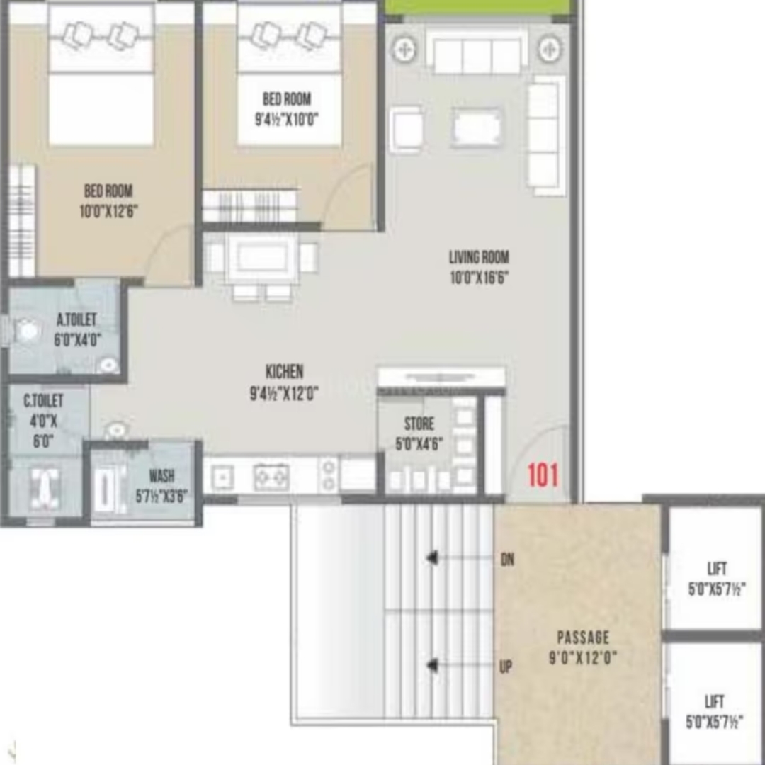 Spread across 0.93 acres, Vijaya Victoria comprises 364 residential units distributed over 8 buildings. As per the area plan, each apartment offers a comfortable built-up area of 601 sq. ft. The project is equipped with a range of modern amenities to ensure a convenient and secure lifestyle, including power backup and fire sprinkler systems.